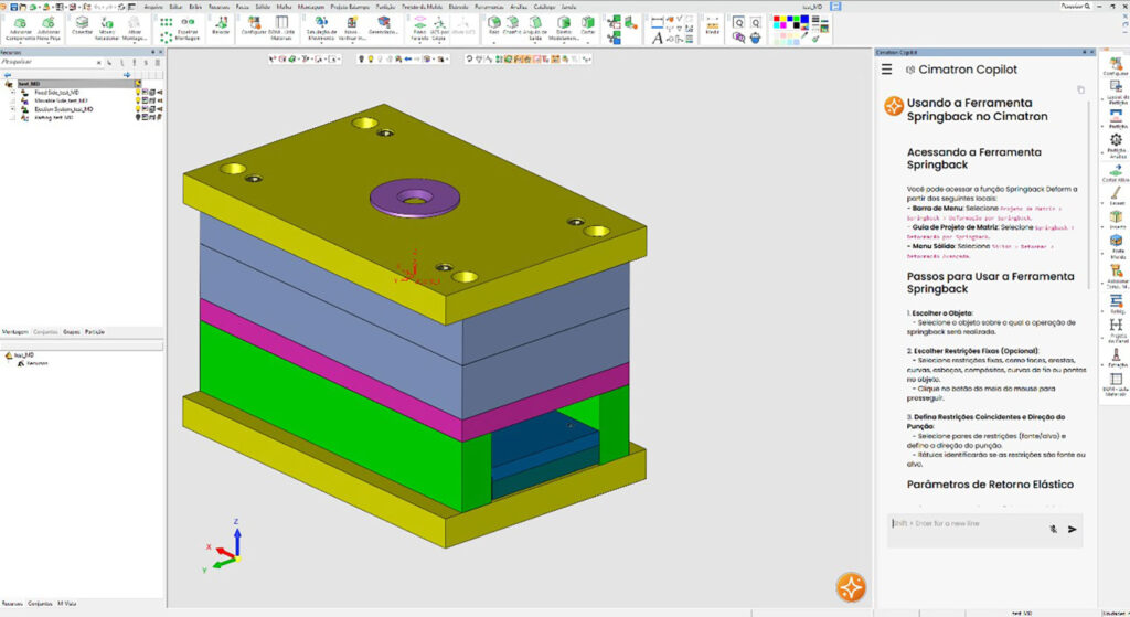 Uma das grandes novidades da versão é o Cimatron Copilot, um assistente digital com tecnologia de IA integrado ao próprio software.