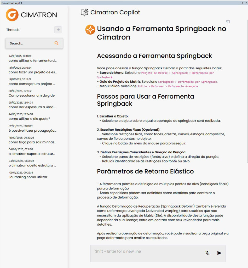 Treinado com o conhecimento das funcionalidades do CIMATRON, o Copilot: