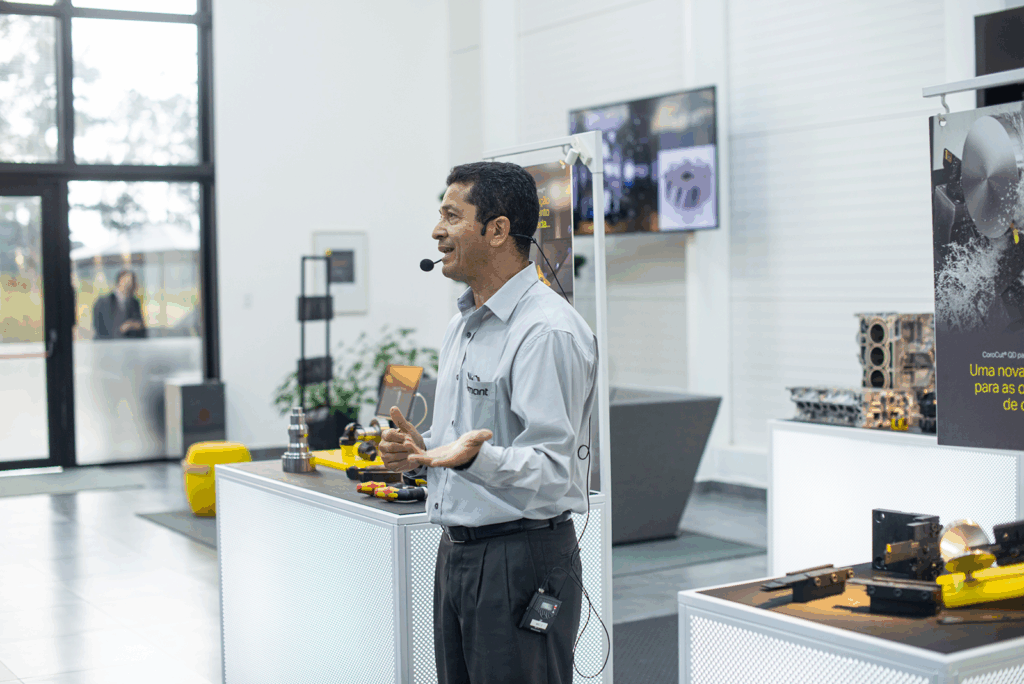 Realizado no moderno Sandvik Coromant Center, em Jundiaí/SP, o evento proporcionou aos convidados uma imersão no universo da manufatura inteligente. O espaço é reconhecido por sua estrutura de ponta, voltada à inovação, ao aprendizado técnico e à integração entre pessoas e tecnologias.