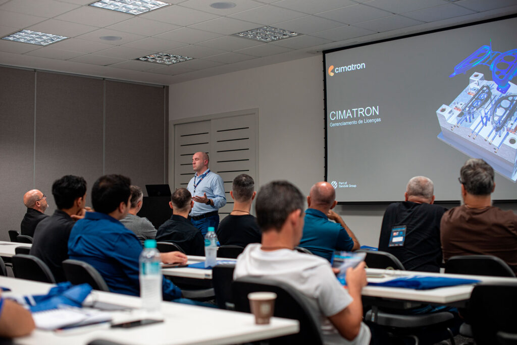 O período da tarde teve como destaques Edson Leite, que apresentou o módulo CAM Eletroerosão a fio, uma das grandes novidades da nova versão, e novamente Davi Assaf, com explicações sobre o novo sistema de licenças do CIMATRON 2026.